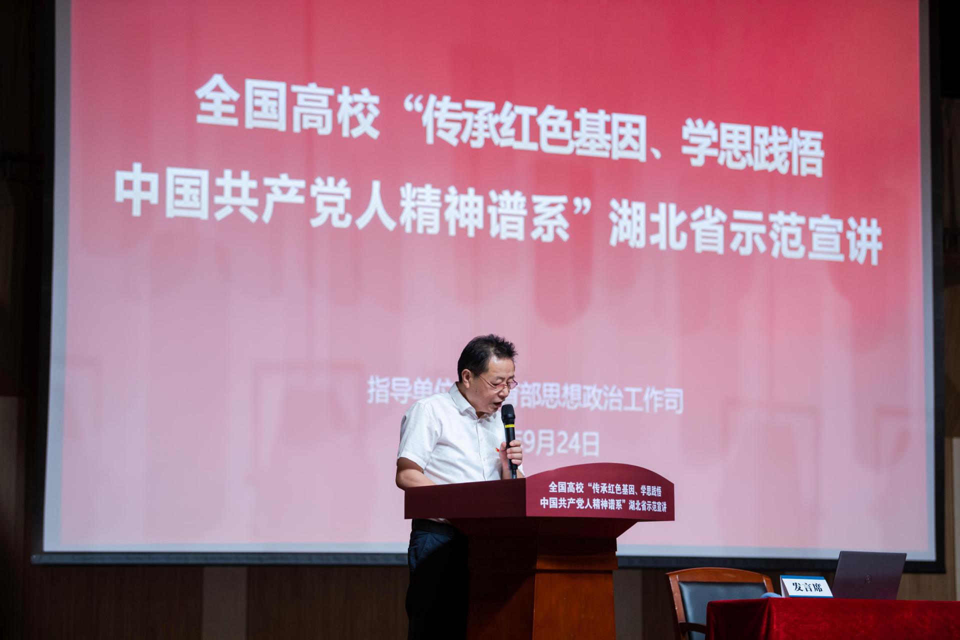9月24日,全国高校“传承红色基因、学思践悟中国共产党人精神谱系”湖北省示范宣讲在校举行。5名来自教育部全国高校“中国共产党人精神谱系”宣讲团的专家进行了示范宣讲。教育部思政司、省教育厅、省委宣传部、省委党史研究室、省退役军人事务厅、省政府国资委分管领导,校领导,全省高校院系党组织副书记,我校学生代表参加。
