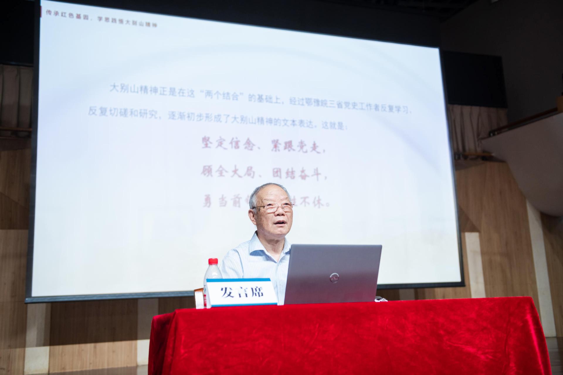 北京大学马克思主义学院马藏研究中心特聘研究员、我校桂岳卓越教授李良明以《传承红色基因学思践悟大别山精神》为题,介绍了习近平总书记首次提出“大别山精神”概念的背景。“坚守信念,紧跟党走;顾全大局,团结奋斗;勇当前锋,不胜不休”的大别山精神,是中国共产党人精神谱系中的重要组成部分。在新长征路上要学习领会好大别山精神,增强“四个意识”、坚定“四个自信”、做到“两个维护”,让大别山精神成为开启全面建设社会主义现代化国家新征程、向第二个百年奋斗目标进军的强大精神动力。