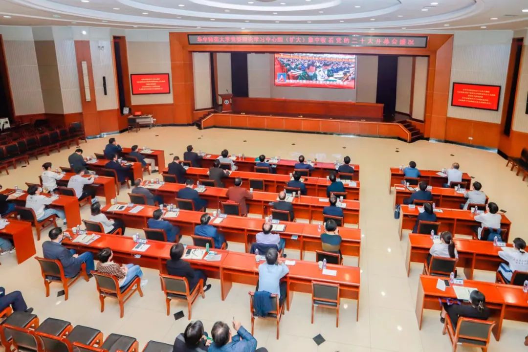 在学校党委统一安排部署下,我校广大党员干部师生以多种形式收听收看了开幕会。上午十时,在科学会堂一楼报告厅主会场,校领导,校党委理论学习中心组(扩大)成员,学校入选湖北省委讲师团、武汉市委讲师团的专家代表,以及来自校学生会、研究生会、社团中心等学生组织的代表集中观看了开幕会,认真聆听了习近平总书记的报告。各单位也设立分会场,组织师生收听收看开幕会盛况。
